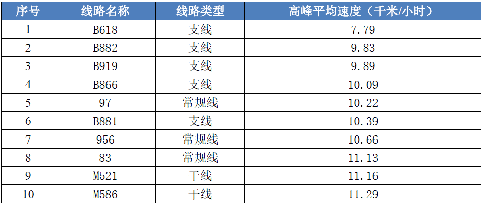 表2 2024年第四季度高峰时段平均运行速度排名后十