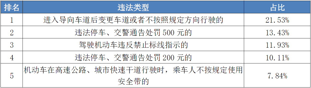 巡游出租车里程利用率下降和交通违法率上升。本季度巡游车里程利用率为54%,环比下降2.6%,为近两年最低。巡游车交通违法率为40.86%,环比上升0.80%。宝路华宝城、海怡小出、驭先等8家企业交通违法率升高超10%。交通违法行为中,进入导向车道后变更车道或者不按照规定方向行驶的约占22%,排名第一,需重点监管。