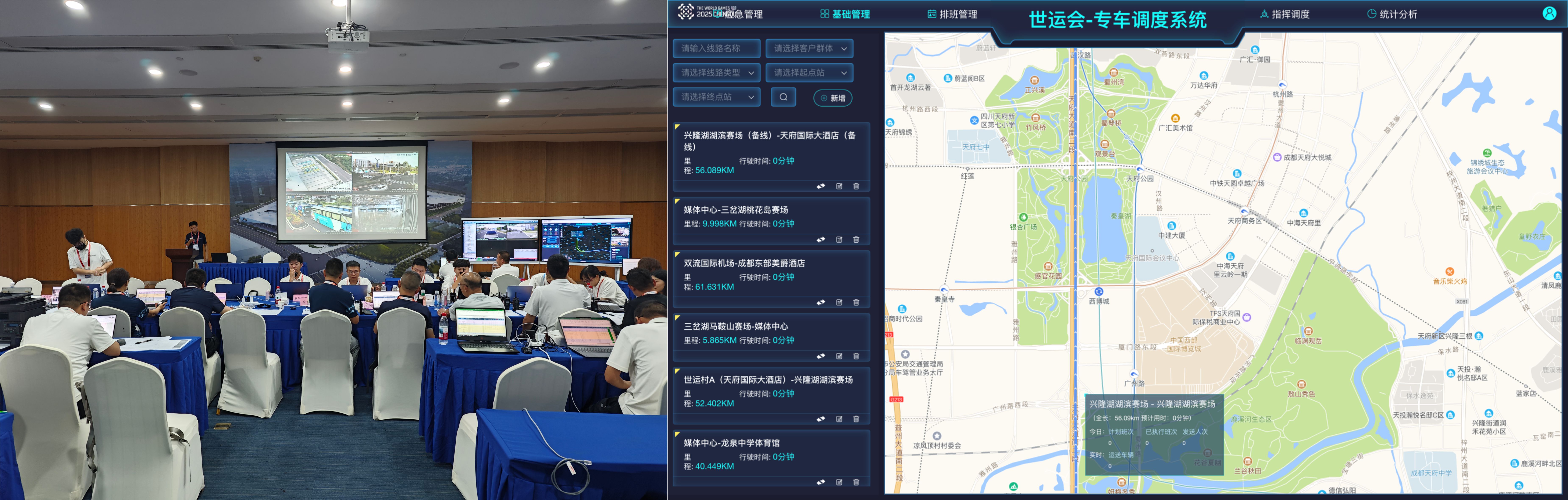为此,我院团队配合主管部门,在充分结合客群礼宾礼遇要求、成都市交通现状、开幕式观礼需求等要素的基础上,制定详细的交通运行计划,精确计算安检、登车、发车时限,车辆严格按既定的保障线路运行,保证各客群准时抵达会场,并通过智慧调度系统全程可视化监控车辆运行状态,一旦发生问题,立即启动应急预案进行处置。