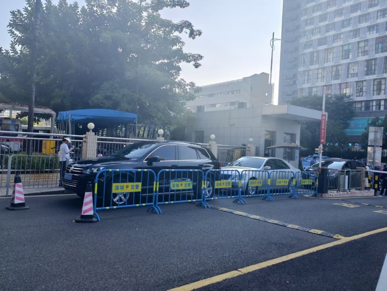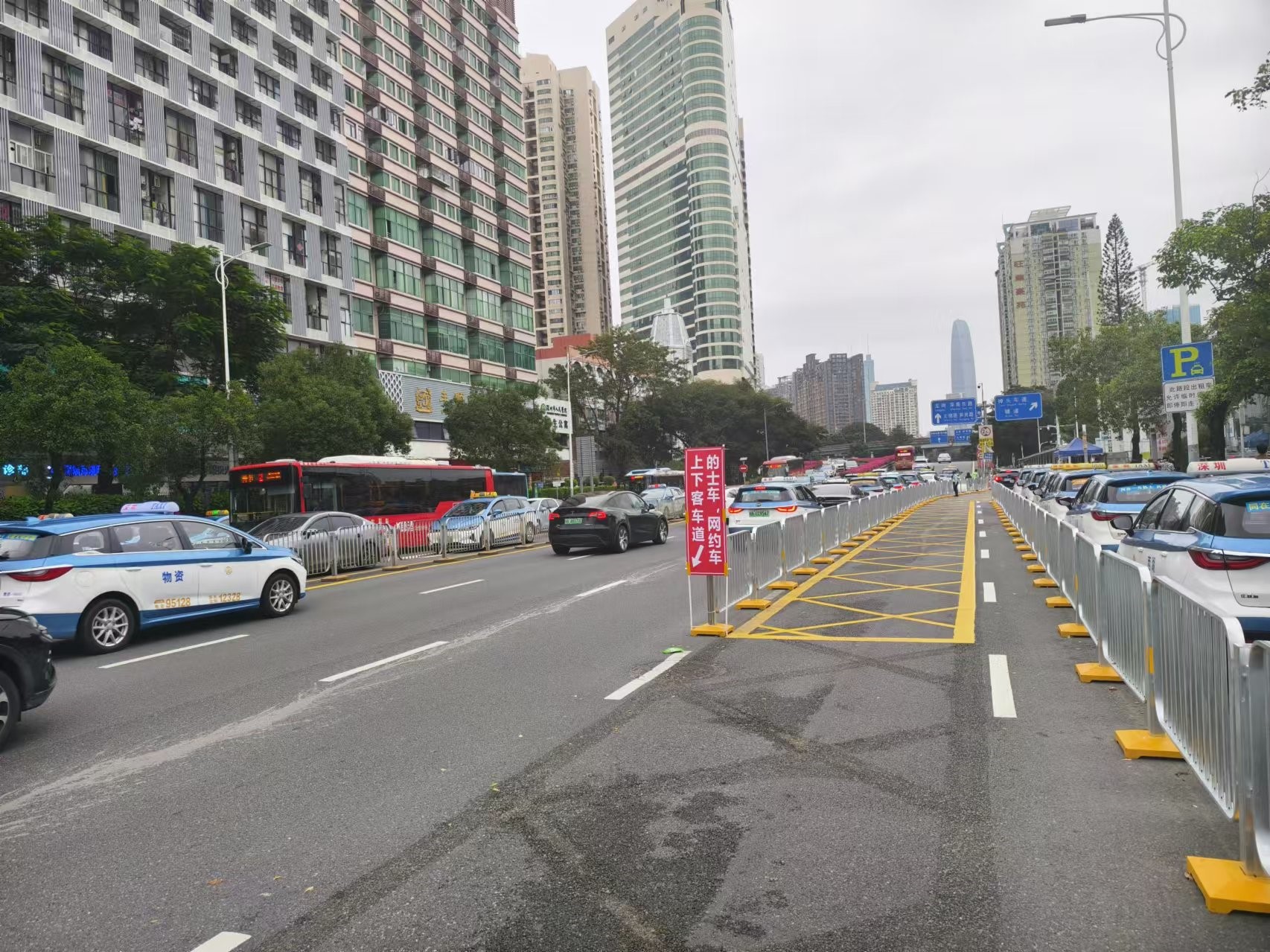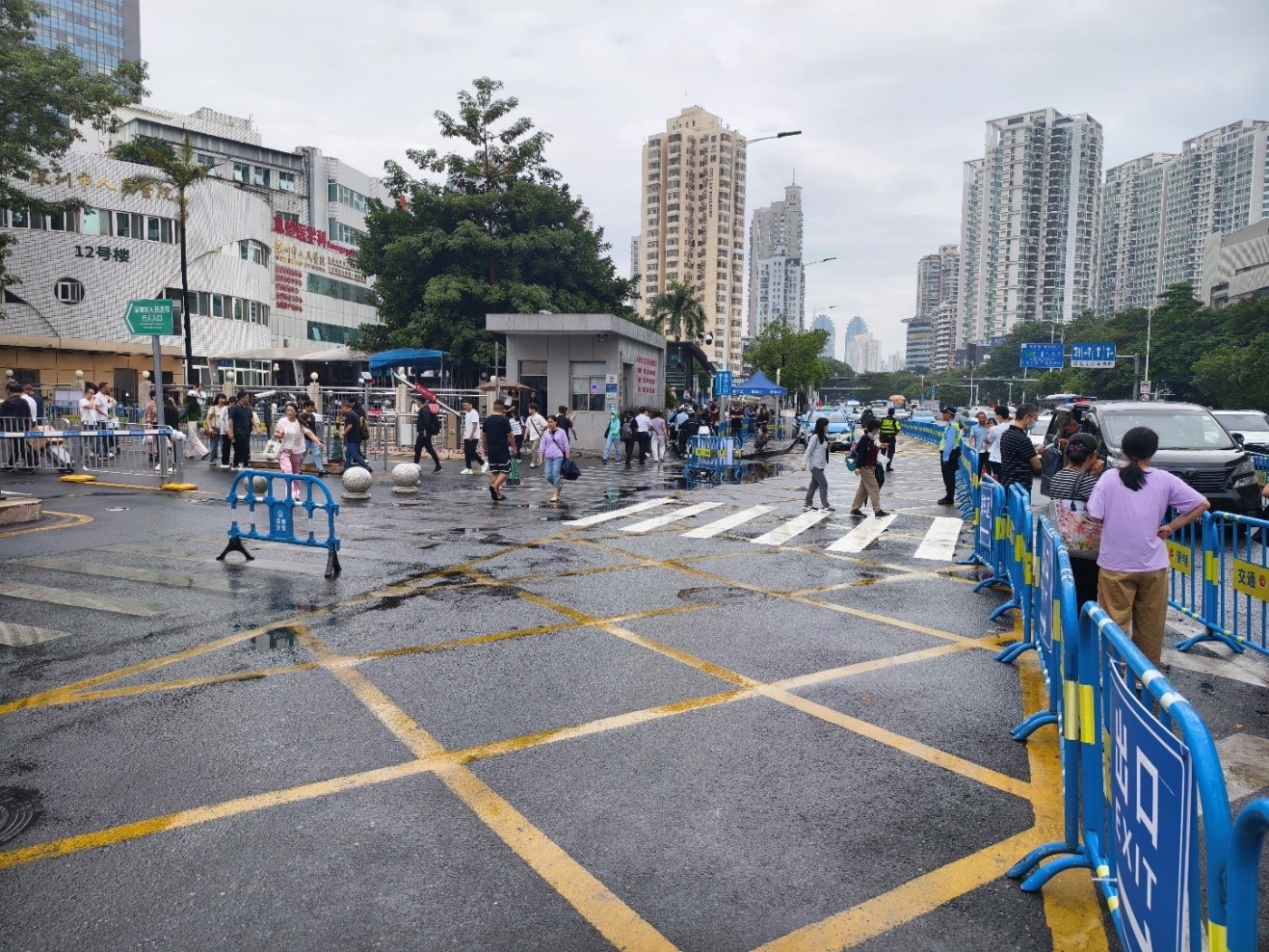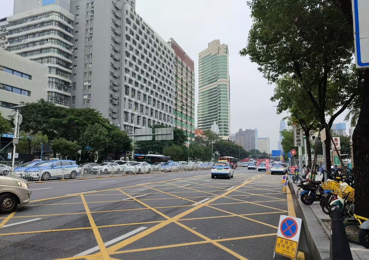 在过去,深圳市人民医院(留医部)周边的交通状况可谓是“一言难尽”。出租车、网约车、社会车辆占多条车道候客及上下客,交通组织混乱;进院车辆排队溢出堵塞急救通道,120急救车辆在院门口寸步难行;人车混行现象严重,安全隐患重重;过境车辆加剧拥堵。这些问题不仅降低了道路通行效率,更威胁到了市民的生命安全!